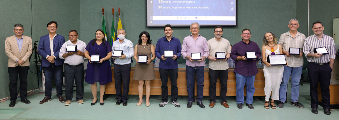 Um dos momentos mais emocionantes foi a homenagem a servidores e docentes que contribuíram significativamente para o desenvolvimento da área. Entre os homenageados, destacaram-se Tarcísio Haroldo Cavalcante Pequeno, João Batista Ferreira Gomes Neto, José Riverson Araújo Cysne Rios, Cláudia Linhares Sales, Creto Augusto Vidal, Javam de Castro Machado, José Caminha Alencar Araripe Júnior, José Neuman de Souza, Rossana Maria de Castro Andrade, Francisco Eduardo Ferreira da Silva, Rosely Araújo Silva Barros e Reginaldo Ferreira dos Santos.
