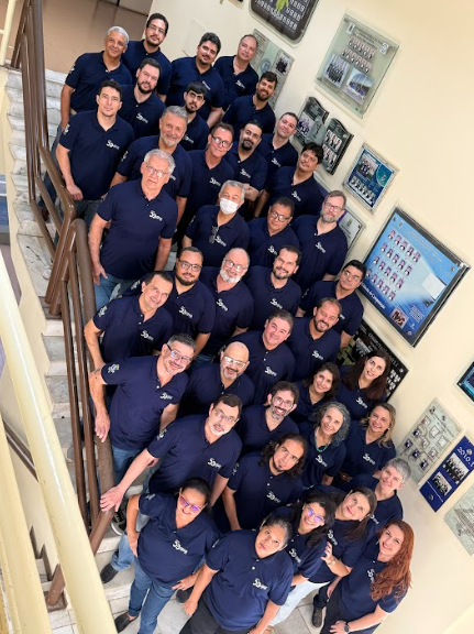 A foto foi realizada na escadaria do Bloco 910, no Departamento de Computação, em frente às tradicionais placas dos formandos, simbolizando a continuidade e a história construída por gerações de docentes, técnicos e colaboradores. Uma marca de meio século dedicada ao ensino, à pesquisa e à formação de profissionais que transformam tecnologia em impacto social.